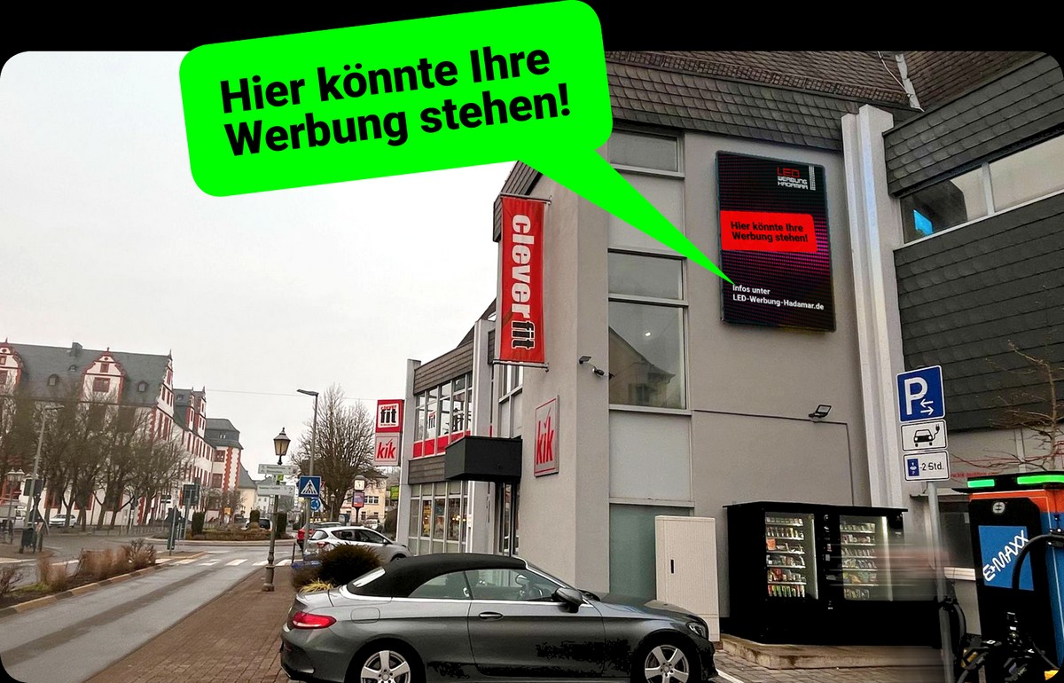 Der Standort der LED-Wand befindet sich an einer der meistbefahrenen Straßen Hadamars, der Gymnasiumstraße stadteinwärts, kurz vor dem Kreisverkehr.