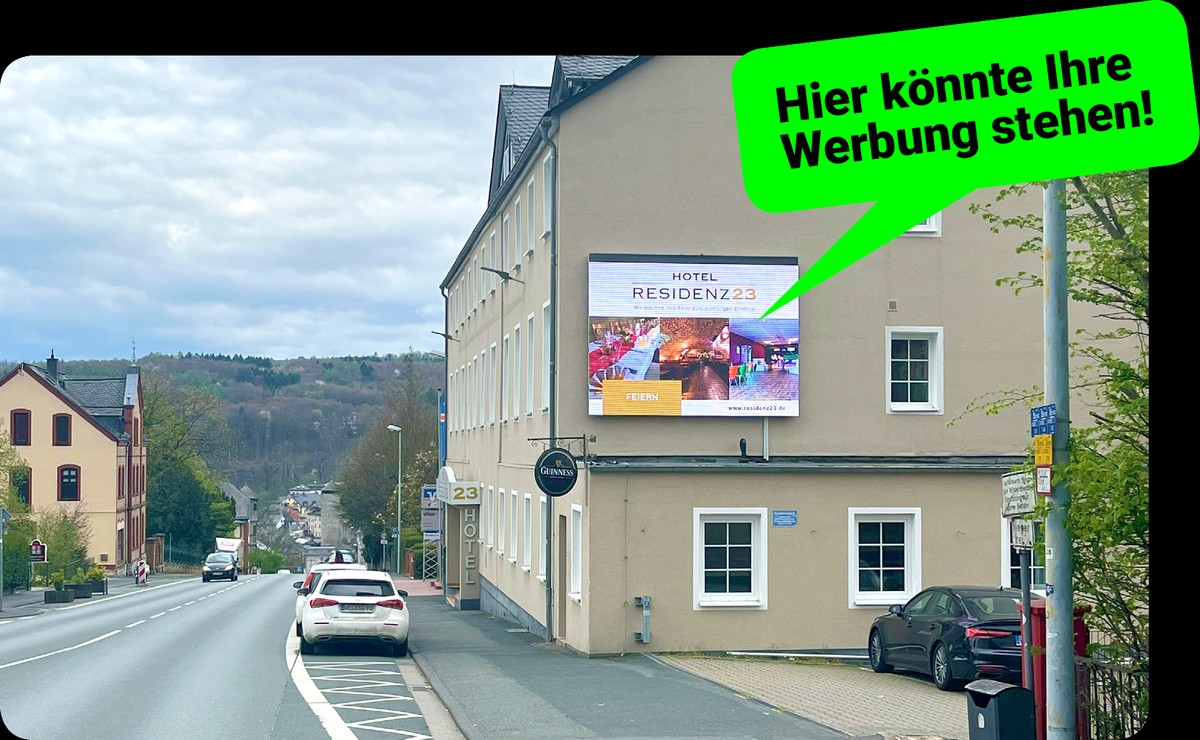 Der Standort der LED-Wand befindet sich direkt am Hotel Residenz23 an einer der meistbefahrenen Straßen Weilburgs, der Frankfurter Straße bzw. B 456 stadteinwärts.